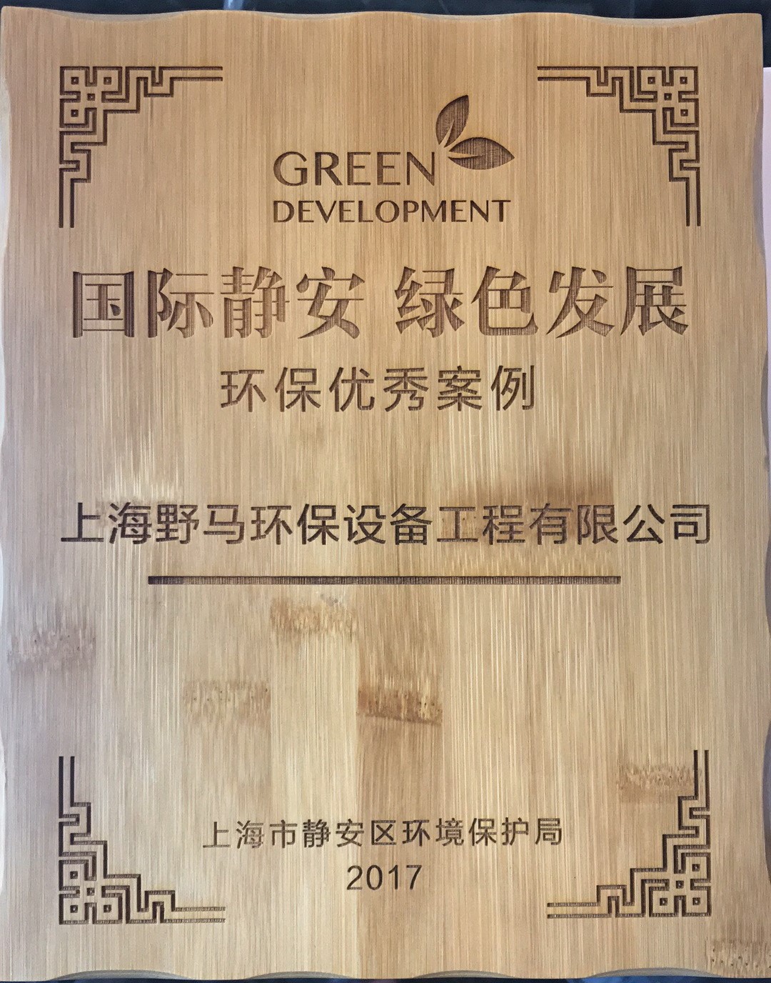 圖片說明:上海野馬環(huán)保設備工程有限公司環(huán)保優(yōu)秀案例獎牌